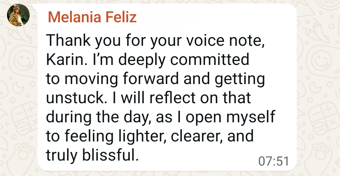 Feeling stuck, lost, or unsure of your next step, and tried hard to figure it out on your own? This ten-day audio journey (send to your phone via WhatsApp) helps you overcome what’s holding you back and find a clear, confident and aligned way forward.