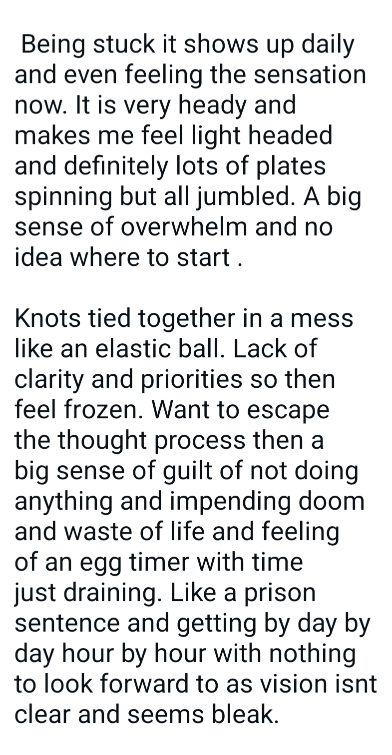 A clear understanding of why you feel stuck, without criticizing yourself or pressurising yourself to force change.