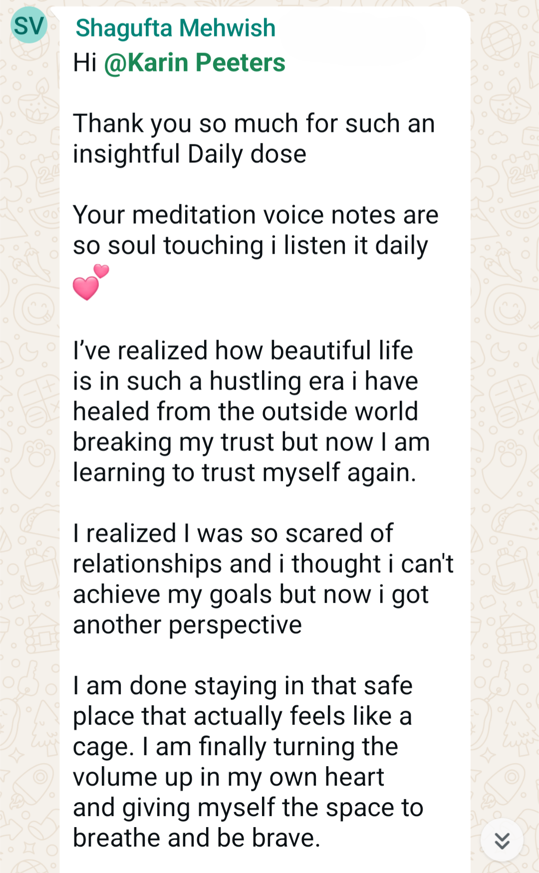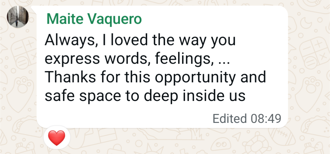 “Thank you for generously sharing and for such meaningful reflections. Being part of this space feels like an act of hope”. - SR